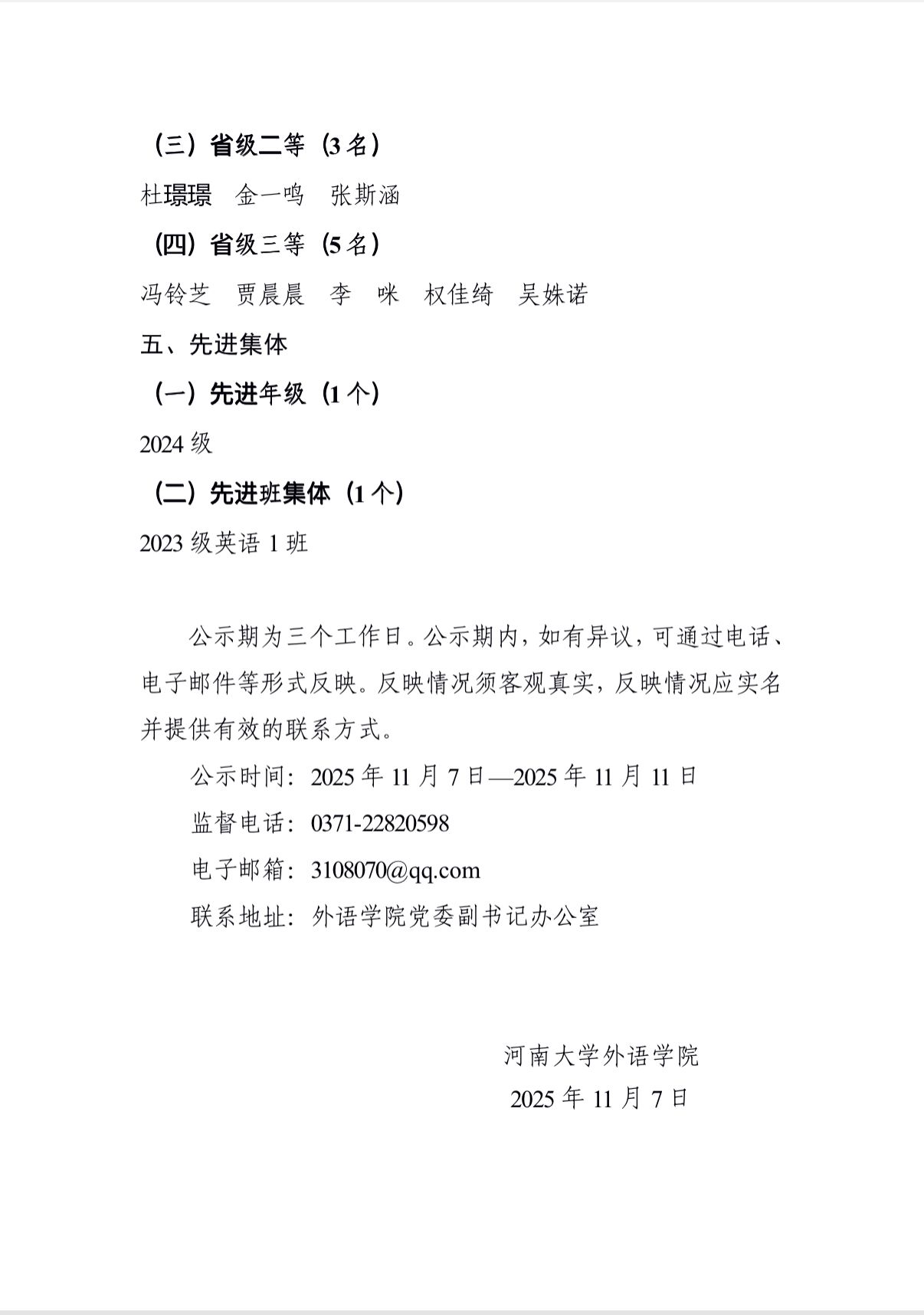 必赢242net 2024-2025学年本科生评先奖优拟获奖 个人、集体公示名单