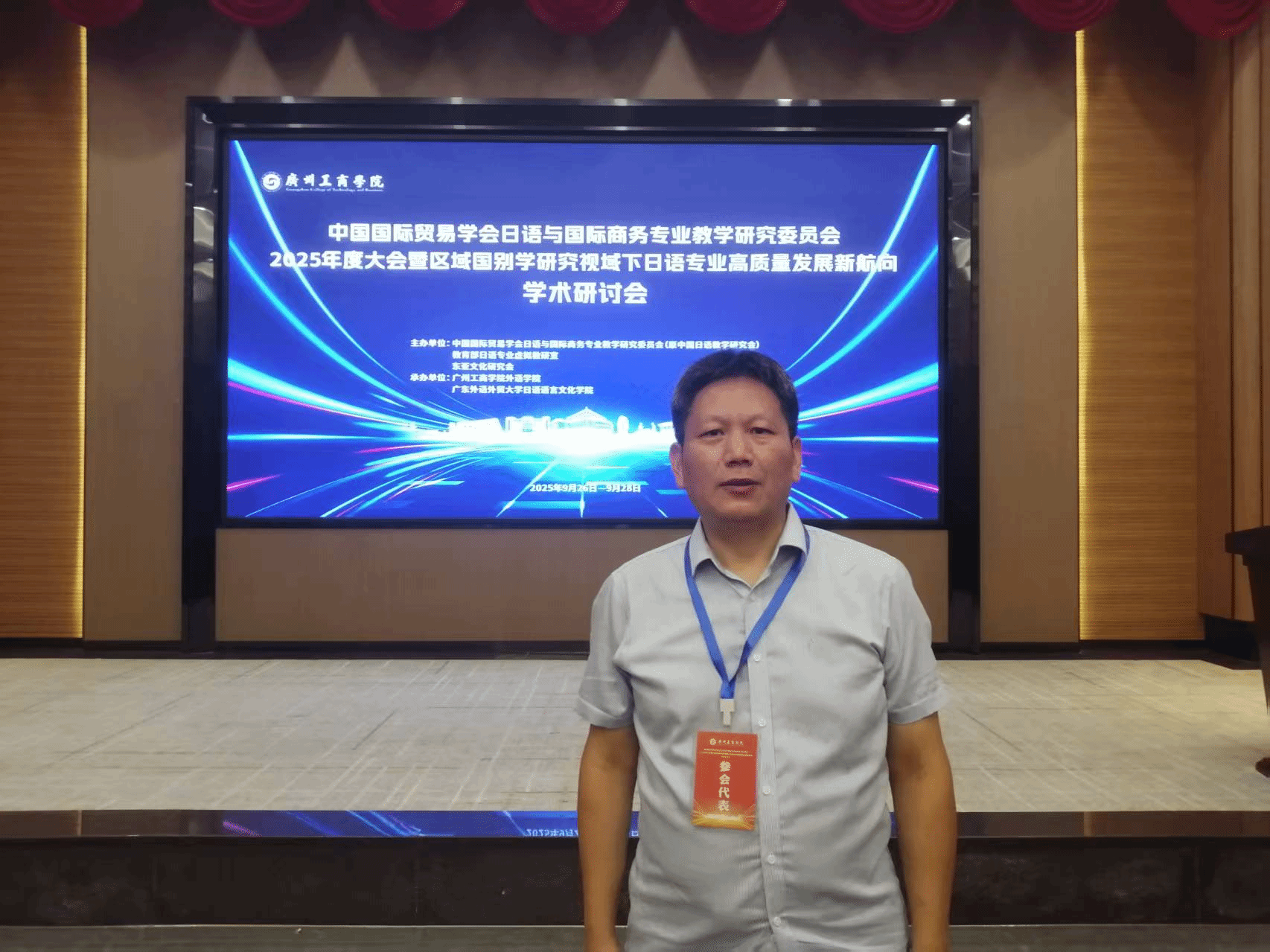 2025年9月27至28日,中国国际贸易学会日语与国际商务专业教学研究委员会(原中国日语教学研究会)2025年度大会暨“区域国别学研究视域下日语专业高质量发展新航向”学术研讨会顺利举行,会议由中国国际贸易学会日语与国际商务专业教学研究委员会、教育部日语专业虚拟教研室、东亚文化研究会联合主办,广州工商学院必赢242net与广东外语外贸大学日语语言文化学院联合承办,吸引了来自全国18个省份、30余所高校及中日韩三国的百余名专家学者,大家齐聚一堂,共商日语教育高质量发展。会议围绕“新时代外语学科服务国家战略的使命与路径”“区域国别研究与日本学团队建设”“新质生产力驱动下的商务日语教育创新”“数字化、智能化技术赋能日语教学改革”“日语语言文化及翻译研究的前沿动态”等重要议题展开,下设11场大会主旨发言、7个分会场专题研讨,与会专家学者在会上分享了自己的研究成果和研究心得,展开了热烈的学术交流与思想碰撞,为中国的日语学科和区域国别学学科教学和研究提供了丰富参考。