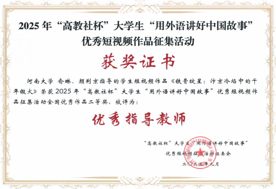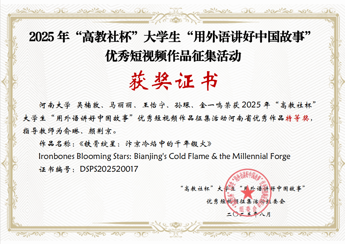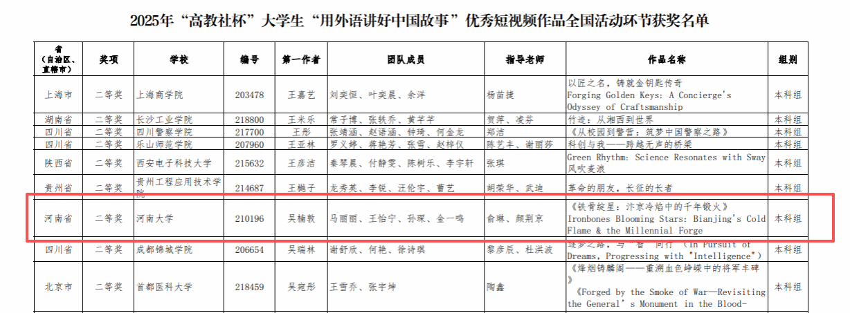 喜报|必赢242net学子荣获2025年“高教社杯” 老员工“用外语讲好中国故事”短视频全国二等奖